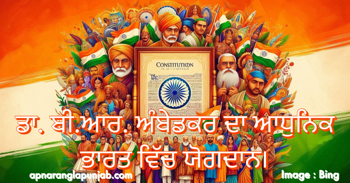 ਬਾਬਾ ਸਾਹਿਬ ਦੇ ਯੋਗਦਾਨ ਦੀ ਗੱਲ ਕਰਦਿਆਂ, ਉਹਨਾਂ ਦੀ ਸਭ ਤੋਂ ਵੱਡੀ ਉਪਲਬਧੀ ਭਾਰਤੀ ਸੰਵਿਧਾਨ ਦੀ ਰਚਨਾ ਵਿੱਚ ਉਹਨਾਂ ਦਾ ਯੋਗਦਾਨ ਹੈ। ਉਹ ਸੰਵਿਧਾਨ ਸਭਾ ਦੀ ਮਸੌਦਾ ਕਮੇਟੀ ਦੇ ਚੇਅਰਮੈਨ ਸਨ ਅਤੇ ਉਹਨਾਂ ਨੇ ਭਾਰਤ ਦੇ ਸੰਵਿਧਾਨ ਨੂੰ ਅਕਾਰ ਦੇਣ ਵਿੱਚ ਮਹੱਤਵਪੂਰਨ ਭੂਮਿਕਾ ਨਿਭਾਈ।